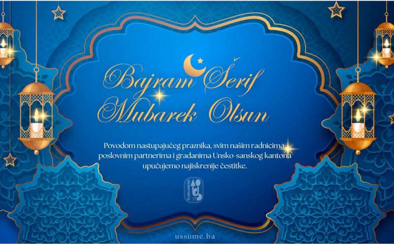 Svim zaposlenicima ŠPD “Unsko-sanske šume” d.o.o. Bosanska Krupa, našim poslovnim partnerima i svim građanima islamske vjeroispovijesti želimo sretne bajramske praznike. Bajram Šerif Mubarek Olsun!Uprava ŠPD “Unsko-sanske šume” d.o.o Bosanska Krupa